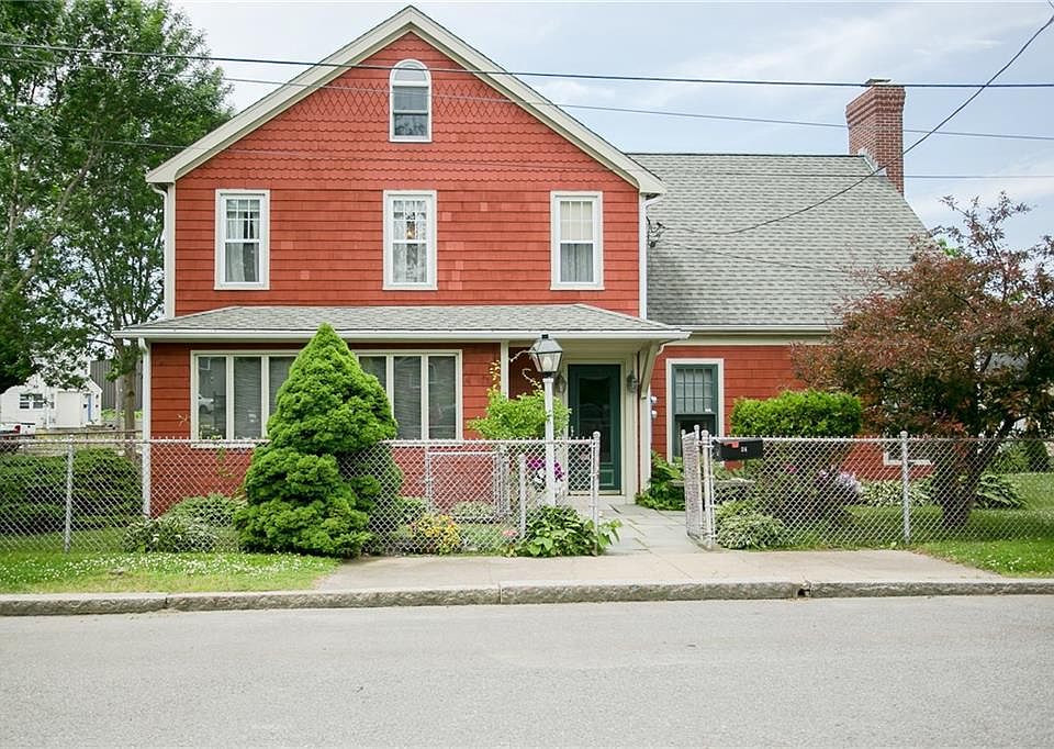 24 Butler St, built before 1849 and well maintained through the centuries, is a side by side zoned multifamily yet easily converts to a single family by removing 2 closets. A few special features of the main house include great room, with soaring 32 ft. fir ceilings, 2nd floor arched balcony, stone fireplace and wet bar room with wine fridge, dishwasher and cabinets, custom millwork in the dining room, master bedroom and hallways. Coffered ceilings, hard wood flooring, faux painted walls, ceiling, shelving and cabinetry in the library and custom moldings throughout the space. Many additional details, reminiscent of the golden days of Newport, exist seamlessly side by side with the updated kitchen and master bath. The original house features an enclosed front porch, hardwood flooring preserved by thick wall to wall carpet, spacious 1920's art deco tiled full bath in mint condition, half bath in master bedroom and a large eat in kitchen. All the utilities are updated and separate. Each property has its own front and back entrances and yard. Situated on a corner lot, there are 3, multi-unit garages, 7 units total, which provide additional value to the property with many optional usages. Rent the original house, live in the main house, rent the garages, or convert to a single family compound....many choices. Owned by the same family throughout the generations, Offerings like this come along once in a life time. For additional info and photos see MLS #1219830