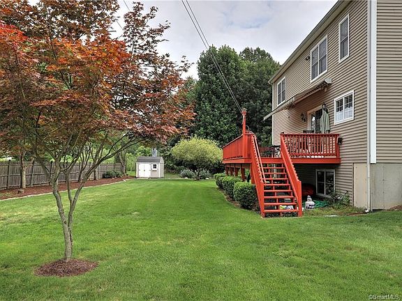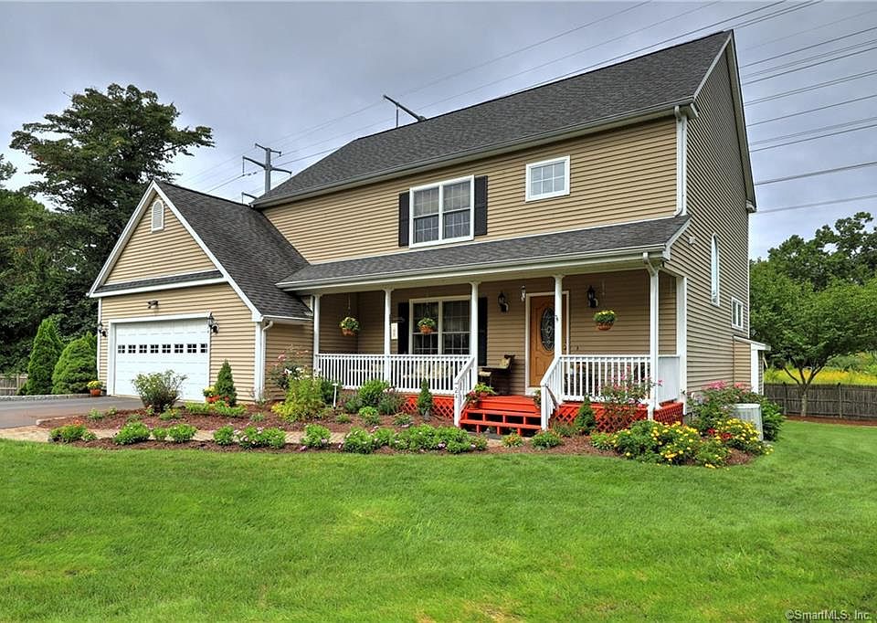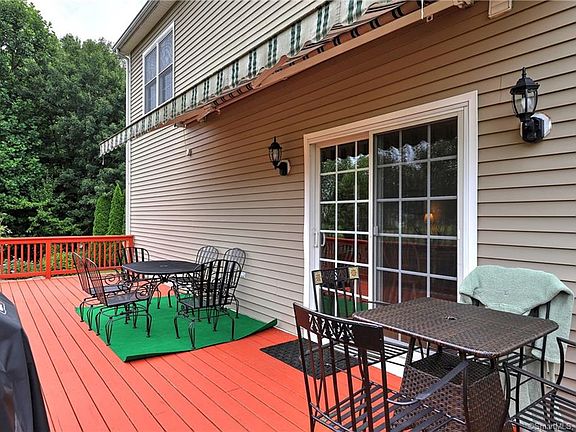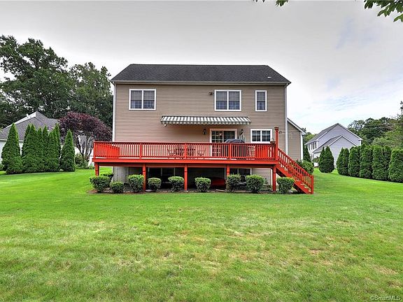 Pristine Colonial north of the Post Road on a cul de sac! The covered front porch and manicured gardens welcome you to this lovely home. The open floor plan allows for family gathering and entertaining with hardwood floors throughout. Special dinners in the large dining room will delight all your family and friends. The eat in kitchen with an island are perfect for everyday! Sliders off the kitchen lead to a huge deck! The master bedroom is extra large with tray ceiling, lots of closet space and a beautiful private bath with a separate shower and jet tub! There are two nicely sized bedrooms with an adjoining full bathroom. The convenient and spacious laundry room is on the second floor and has built in cabinetry for storage. The lower level is finished and is another great space for entertaining. The property is beautifully maintained! Large 2 car garage! Central air and gas heat!