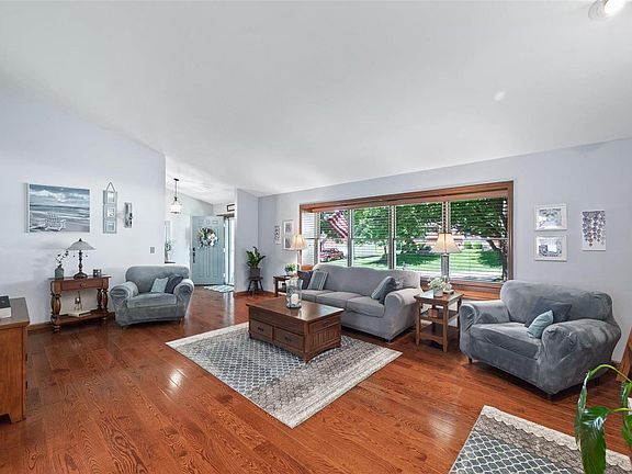 Updated open floor plan 3 BD 3 BA ranch located in the desirable Huntington Park Subdivision, walking distance to McNair park. Real hardwood flooring (2017) in all the main living areas, & master bedroom suite, vaulted ceiling, w/floor to ceiling brick fireplace recently converted to gas for convenience, bay window w/big Anderson insulated wood windows, hard surface countertops, undermount sink, & center island, formal dining room, tray ceiling & main floor laundry. Master suite with huge 10x10 ft walk in closet (formerly a nursery room) and updated/enlarged master bath with jet tub (2021)/separate shower, double sinks, tile floors. Fantastic lower level boasts a huge rec room w/cleaver gaming closet, BA, wet bar w/refrigerator, & cabinetry. Oversized 3 car garage 26x37 ft with plenty of room for a workshop, storage or toys. Upgraded to LG composite deck in 2019,w/thin banisters to allow for the best view of the park like yard, & mature trees. New roof and gutter guard added in 2018.