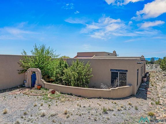 Welcome home to Tierra de Casta, where spacious living meets breathtaking beauty. This magnificent residence is situated on five wonderful acres, offering you all the room you could ever desire to breathe and relax. As you step inside this 4,000+ square foot home, you'll be captivated by the grandeur of large rooms and soaring ceilings, all adorned with the finest finishes. The primary suite is a true sanctuary, complete with a wood-burning fireplace and the rustic charm of vigas and tongue-and-groove ceilings. The luxurious primary bath invites you to unwind in the Jacuzzi tub or separate shower, and the exceptionally large walk-in closet provides an abundance of space. The home also features two additional generously sized bedrooms, each with its own ensuite bath, providing comfort and privacy for family or guests. A large den, office, or library offers a versatile space for work, study, or relaxation. The heart of the home is the great room, which offers wonderful western views that will take your breath away as the sun sets. This space provides direct access to the formal dining room, where a beautifully stamped tin ceiling adds a unique and elegant touch to gatherings. The well-appointed kitchen, featuring a stunning island, is ready for all your culinary adventures. Don't forget the sunroom, a cheerful spot with easy access to the rear portal, perfect for enjoying your morning coffee or evening refreshments. If you've been searching for a place with ample space to live, entertain, and create lasting memories, look no further. This home truly has all you need and so much more. Welcome to Tierra de Casta.