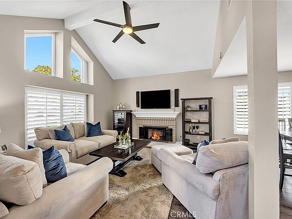 Experience the charm of coastal living in the desirable Beacon Hill neighborhood, where ocean breezes are a daily delight. This inviting home welcomes you with its soaring cathedral ceilings in the living room, creating an open and airy feel, while the crushed glass fireplace adds a cozy touch. The adjacent dining room comfortably seats eight, perfect for gatherings. The updated kitchen features white shaker cabinets, stainless steel KitchenAid appliances, a sleek white quartz countertop, and a designer Blanco sink. A breakfast bar connects the kitchen to the family room, offering a casual dining space and easy access to outdoor entertaining through a sliding door, leading to a BBQ-friendly backyard. The attached garage provides direct access and includes built-in cabinets, as well as space for a washer and dryer. A large powder room completes the lower level. Upstairs, the primary bedroom offers vaulted ceilings, ample natural light, a walk-in closet, and a ceiling fan. The remodeled ensuite bathroom boasts a spacious walk-in shower with double shower heads, built-in seating, and dual vanities. Two additional guest rooms share a full bath. Additional updates include a newer roof, HVAC system, complete PEX repiping, wood laminate flooring downstairs, and upgraded carpet upstairs. Dual-pane windows and white plantation shutters throughout the home offer privacy and energy efficiency. The home is situated on a quiet cul-de-sac, just minutes from John Malcolm Elementary School. The main Beacon Hill pool and tennis courts are conveniently located at the end of the street, adding to the appeal of this fantastic community.