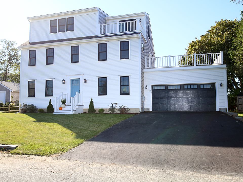 Beautiful, brand new construction in sought after Town Neck in Sandwich awaits you. This 2700 square foot colonial with coastal flair sits on a 7500 square foot lot. Open concept living with custom built-ins that flank a gas log fireplace. Seven quartz island centers a custom white kitchen with stainless appliances. A wide cased entry leads into the dining room with wainscoting. Crown molding, custom lighting, ship lap and bead board are noted throughout the first floor. Easy access to the private back yard and enjoy nature on the patio, by the built in fire pit and large outdoor shower. Second floor boasts 3 bedrooms with master bedroom with adjoining step in shower in Cape Cod Blue tile. Other 2 bedrooms share a bath with laundry. Third floor bonus room with 1/2 bath and Juliet balcony is space that could be used creatively. 2 car garage, full basement, sprinkler system, hardwood floors throughout with porcelain tile in bathrooms, gas heat, town water, Anderson windows and most importantly water views from all three floors of living space! Must see the jewel of the home... a large roof top deck with stunning views of Cape Cod Bay! Call property owner (Judy) at the number at the bottom of the page for any questions you have or to schedule a time to see the house. We are willing to pay any realtors who bring buyers a commission.