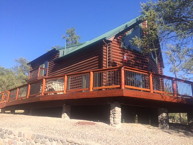 Gorgeous log-sided cabin in the ponderosa pines on nearly 2 acres, bordered by the Gila National forest. Start your hunting, hiking and horseback riding expeditions from your home base oasis in the Mimbres River Valley of south-western New Mexico. All the comfort and convenience of a modern home with stunning scenery through view windows. Great room with cathedral ceilings and a rock fireplace welcome you and your guests. Upstairs features include a 620 sq. ft. master bedroom with office area, walk-in closet, balcony and master bath. Downstairs has 2 bedrooms, bathroom, and washer-dryer. The kitchen with breakfast bar and custom cabinets provides an easy gathering spot. Relax or entertain on the wrap-a-round deck with rock grill. A large paddock, small practice arena, run-through barn, hay barn, shed and circular driveway make the property perfect for horses if you choose. A private gate leads you into bordering US forest lands where you're off to your next adventure!