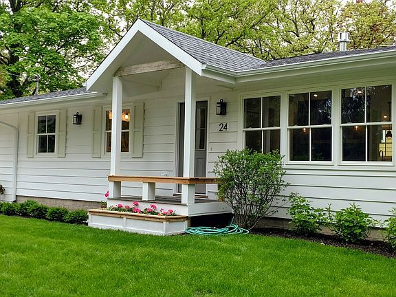 Completely renovated and professionally designed for easy lake living; this house is move-in ready. Open and bright with high-end finishes and fixtures, white Shaker kitchen, quartz countertops, custom tiled showers, new Pella windows, and plenty of shiplap! Walk-out basement features a large bedroom, bath and TV room w/ wet bar. Enjoy sunset views from the new composite deck - or make the block walk to the lake, village beach, restaurants and shopping. Parking for up to 5 cars or your boat. This house will not disappoint!