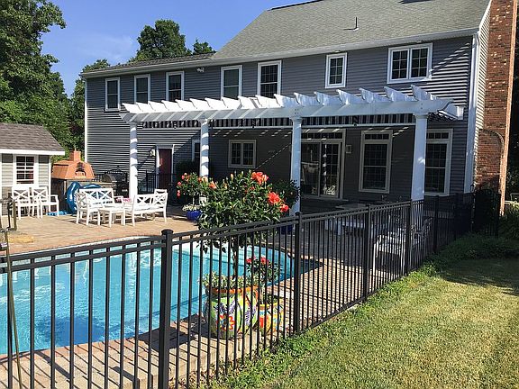 Spacious 3+ BR, 2 1/2 bath colonial with 9 ft ceilings and open 1st floor. Mini-estate feel with resort-like grounds including large pool/patio/outdoor kitchen, apple trees and additional detached garage.