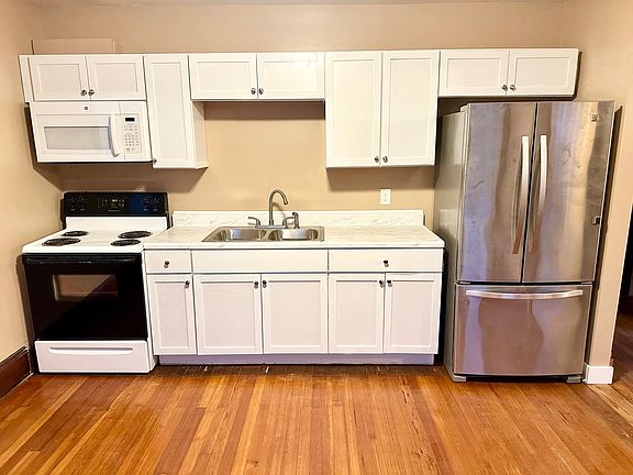 Beautifully updated 3 bedroom for rent with Garage! In a quiet residential neighborhood with off street parking and a big backyard! All heat is included! This apartment has a newly renovated kitchen, flooring and paint throughout. Off street parking is available for 2 cars and garage space is also available! Please respond with the following information: # of occupants: employment information: reason for moving and your preferred move in date: monthly gross income: Non-smoking property, cats are OK, sorry no dogs. Available immediately! 12 month lease required. Cats are OK sorry no dogs.