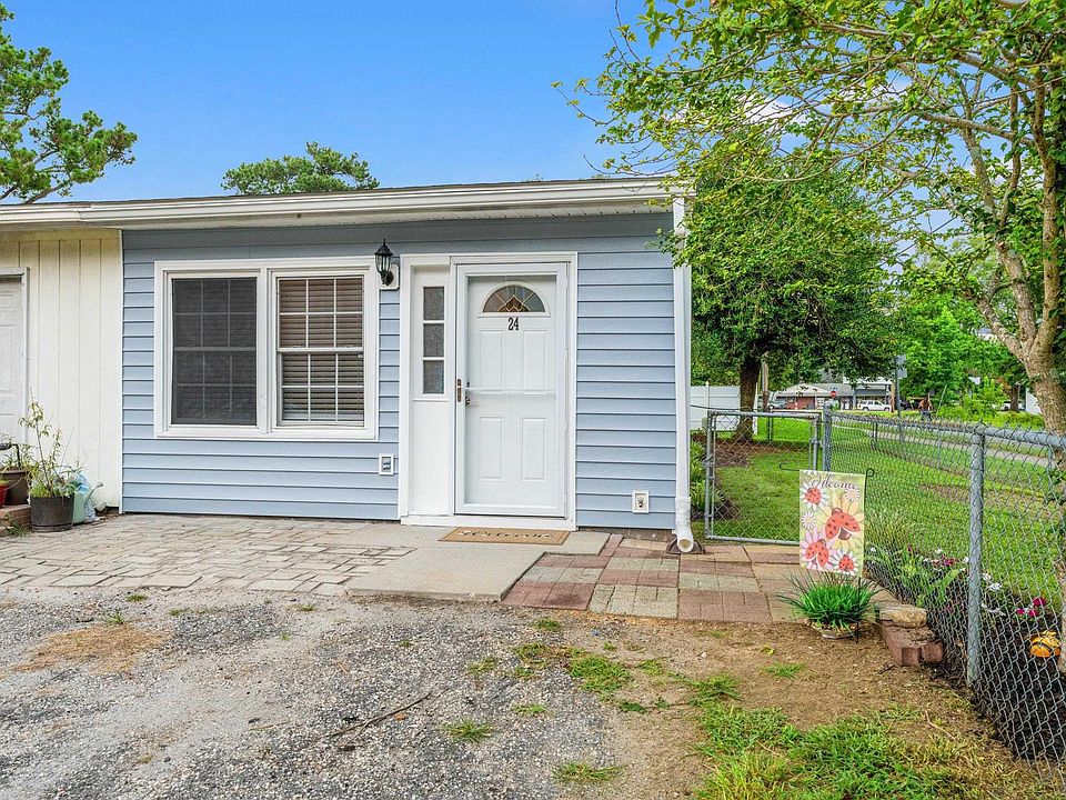 Don't miss out on this incredible opportunity! This recently renovated and super clean townhouse has NO HOA and is only ONE mile from the beach! Featuring 2 bedrooms and 2 full bathrooms, this end unit is entirely on ONE LEVEL and includes a huge fenced-in yard, something truly unheard of for a townhouse. Inside, the kitchen has been totally redone with new cabinets, new counters, breakfast bar, new stove and microwave (2025). The bathrooms have been upgraded with new vanities and mirrors (2025) and a new water heater was installed in 2023. There is also a separate laundry and both washer and dryer convey. The primary bedroom suite includes a separate walk-in closet and full bath. A second bedroom also has a full bath. A recently renovated back room is perfect as an extra room or for storage. The home’s exterior includes new insulation and siding and new windows were installed in the kitchen and back room. The fenced in yard is perfect for pets and cook-outs. It’s also a great place to garden or grow vegetables. This home is super convenient to shopping, restaurants, the beach and airport. A perfect place to call home if you want to live comfortably without a lot of expense.