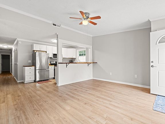 - Features: Breakfast Bar, Stainless Steel Appliances, Solid Surface Counters