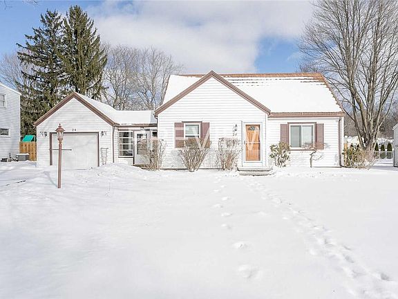 Welcome to 24 Charmaine Rd~SO MANY RECENT IMPROVEMENTS IN LAST 3 YEARS~(NEW SEWER LINE 2018/19 FROM ROAD TO HOUSE, BATH UPDATES 2020, KITCHEN FLOOR 2020, BUILT-IN MICRO 2021, FRIDGE 2018, INTERIOR PAINTED 2022, NEW VINYL PLANK FLOORING 2022, FURNACE CLEANED & INSPECTED 2/2022)~NEST THERMOSTAT, 200 AMP ELECTRIC SERVICE~METAL (ASPHALT LOOK)2010~MOSTLY THERMO PANE WINDOWS~C/A~VINYL SIDING~BREEZEWAY~ATTACHED1.5 CAR GAR~2 RAISED GARDEN BEDS~FENCED YARD~CONCRETE PATIO..... YOU WILL LOVE HOW THE HOUSE SITS BACK FROM THE ROAD.....(PLEASE NOTE:: ITEMS IN GAR ARE NOT INCLUDED)DELAY NEGOT 3/8.
