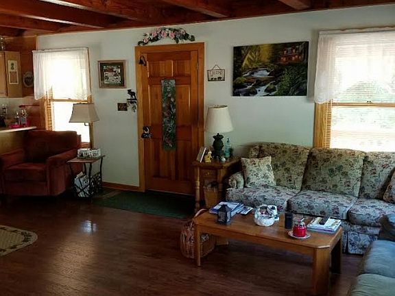 Nicely maintained 3 bedroom home situated on 5.4 acres with open field and wooded area. Quality constructed home with open concept kitchen, living room and dining area with post and beam ceiling. Oak cabinets line the kitchen for plenty of storage. First floor bedroom and bath nearby. Upstairs offers a bright family room area, cathedral ceilings with large master bedroom, additional bedroom and an extra unfinished room if you would like to add a bath, roughed in plumbing only. Full walkout basement, wrap around farmers porch and an Oversized garage with plenty of storage to complete this home. Come take a look!