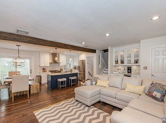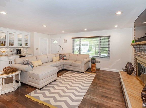 Completely renovated and nestled on inviting neighborhood block convenient to HHK town, school & NYC train. Sparkling cabinetry, glistening floors, recessed lighting & nature views greet upon entering this fully updated home. Open Concept boasts full sitelines to sunlit Living Rm with Fplc, Dining with sliders & dreamy Chef's Kitchen w/quartz counters, subway tile backsplash, industrial faucet, white cabinets, & lovely deep blue Island w/seating. Entertaining is a joy using the custom white Bar Station w/wine fridge and glass uppers. Lower Level offers Family Rm w/custom Built-In basket storage perfect for Little People toys. Lndry is nearby. Luxurious new Master Bedrm Suite w/tray ceiling offers seating area, generous Spa Master Bath & Walk-In Closet. Bedroom w En Suite Half Bath, 2 addtl Bedrooms and Full Hall Bath complete the 2nd flr. Oversized attached garage. Be prepared to enjoy treasured memories this Summer in your new backyard w/inviting pool. HoHoKus is calling.