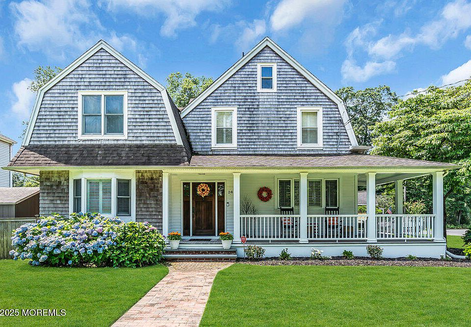 Set on a quiet street in Fair Haven, 24 Chestnut Street is a beautifully maintained Nantucket-style home filled with charm and character. This 3-bedroom, 2.5-bath residence features a welcoming wraparound porch, detailed millwork, custom built-ins, and hardwood floors throughout. The functional layout includes spacious living and dining areas, ideal for both everyday living and entertaining. The primary suite offers a private bath and ample closet space, while two additional bedrooms provide flexibility for family, guests, or a home office. Enjoy a landscaped backyard, detached shed, and full basement. Close to top-rated schools, parks, shops, and the Navesink River. Not to be missed! Schedule your private showing today!