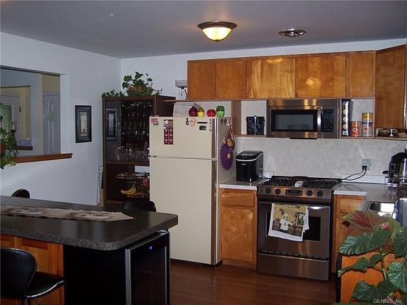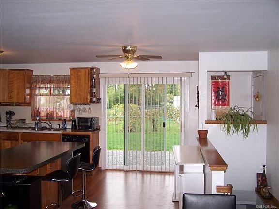 Additional 1000 sq ft in finished basement-family room, bedroom with walk-in closet and full bath, hobby room and laundry room-easy in-law adding a kitchenette-full walkout. 1st floor open layout-breakfast bar, generous cabinet space. Decorative fireplace in Living room /Dining room combination. Central air conditioning. Appliances remain. Sliding doors to stoned patio area-nice privacy in backyard.