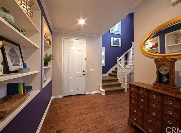 Ideally situated on one of Flintridge Villages best cul-de-sac streets, this tasteful & spacious residence blends traditional East Coast styling w/quintessential Ladera Ranch indoor & outdoor living. A charming covered porch & inviting brick exterior await your arrival. This 4 bedroom 3 bath home creates a dramatic first impression w/spacious entry foyer framed by hardwood floors & lighted niches. Noteworthy appointments include extensive use of hardwood flooring, high ceilings, plantation shutters, crown moldings, recessed lighting, custom built-ins & more. Expansive, bright & open rooms flow easily from one to the next in this appealing home, with special highlights including a large, open living room w/used brick fireplace, ground floor BONUS ROOM & an open-format chefs kitchen w/granite surfaces & a full range of premium appliance. Upstairs, the sunny 2nd story landing is host to a built-in study desk & outdoor covered view deck. All bedrooms are upstairs & include an oversized master featuring double closets & an ensuite bath offering dual vanities, soaking tub & separate shower. French doors open to a large rear yard w/spacious patio & serene, babbling brook water feature. A 2-car garage completes this irresistible Flintridge Village residence.
