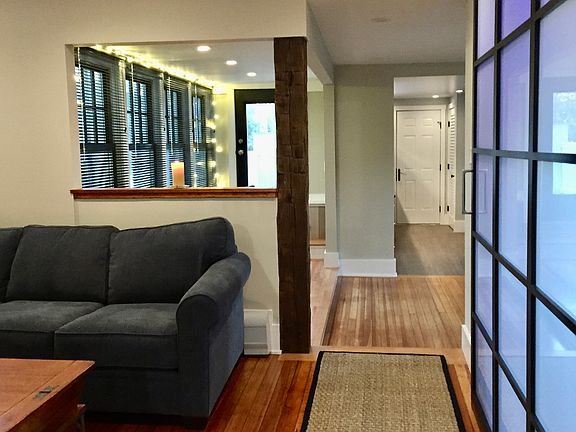 This second floor furnished apartment is convenient to all Downtown Northampton has to offer. The kitchen has a gas stove, refrigerator, dishwasher, custom ceramic backsplash and granite counters. The living room is open to the dining area and kitchen. There is a door that opens to a private porch with views of downtown Northampton. In addition to the primary bedroom is a sliding door that opens to the second bedroom which could be left open to a more spacious living area or office. There are two bathrooms. One with a shower and the second with a soaking tub. Realtor fee of 60% of one months rent due with application. If application is denied the fee is refunded in full.