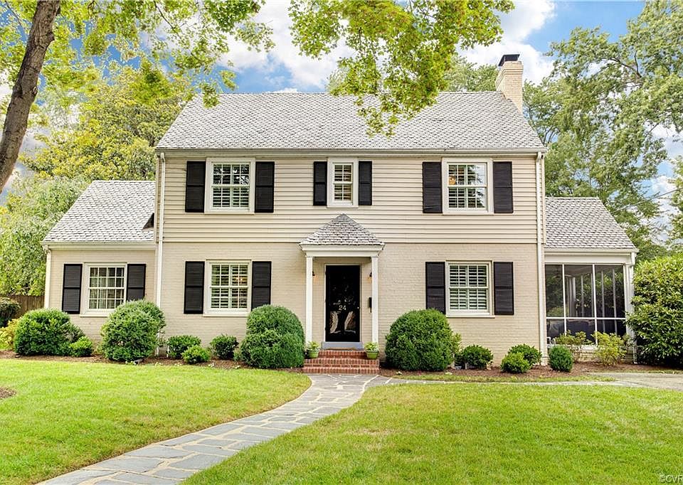 Live on the Grove Corridor with walkable access to Libbie & Grove and Mary Munford. This handsome Colonial offers a pretty entry with stairway up and opens to a large family living space with a fireplace and 2 French doors to a side screen porch. The formal dining room has gorgeous grass cloth opens to a family room with built-ins and a large eat-in kitchen. The renovated kitchen has a large island, quartz countertops, stainless appliances, hardwood floors and a picture window overlooking the private back yard. Off of the kitchen is a door to a beautiful bluestone and brick terrace offering a large space for outdoor living overlooking the fenced and beautifully landscaped flat back yard. Off of the kitchen is a back hall that has a powder room, pantry and door to the waterproofed unfinished basement, which is great for future expansion. Upstairs, the original master bedroom is a nice size, has an en-suite full bath and large walk-in closet. There are 3 additional good-sized bedrooms (not a nursery) and a full hall bath to share. Enjoy the paved double driveway, new Anderson windows and a wonderful civic association with events to connect with the community.