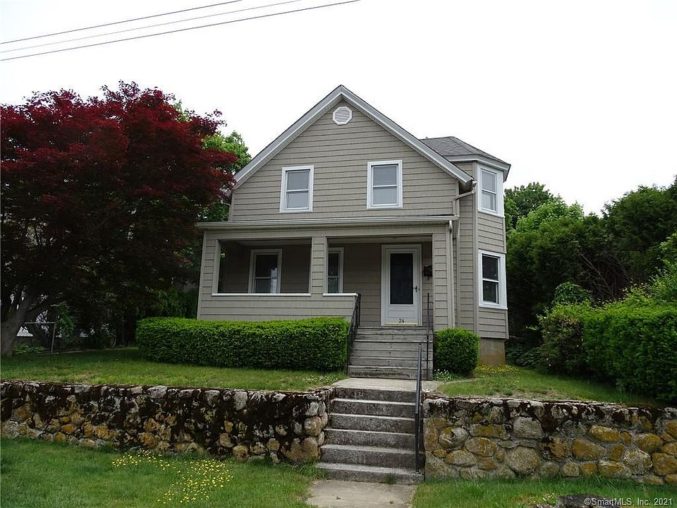 3 bedroom conventional style home with 4th room upstairs for office, playroom, nursery, etc. Hardwood floors, formal living room, dining room and eat-in kitchen. 1st floor has a large foyer with window seat. 1st floor bathroom has tub/shower. 2nd bathroom is in the basement and has a shower. Nice yard with a stone wall, large 2 car detached garage with loft storage.