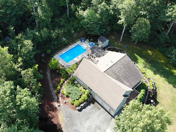 Enjoy the stillness of nature in a secluded subdivision. This open concept ranch sits on 1.57 acres surrounded by trees, just minutes away from Beaver Lake (with lake rights available) and the scenic Quabbin Reservoir. White oak floors cover the living, dining and kitchen areas. Picture and double windows fill the home with natural light, most notably in the three-season room. The spacious custom kitchen is a home cook's dream with stainless steel appliances, ample storage space, and soapstone countertops and island. Built-in bookshelves flank a propane fireplace in the living room. The walk-out finished basement has a bedroom, kitchenette, and full bathroom - perfect for an in-law apartment. The front porch and backyard patio allow you to enjoy the lush greenery and trees encircling the property and the manicured landscaping. Spend your summers swimming in the in-ground pool. The yard is also fenced so that pets and kids can run around outside safely.