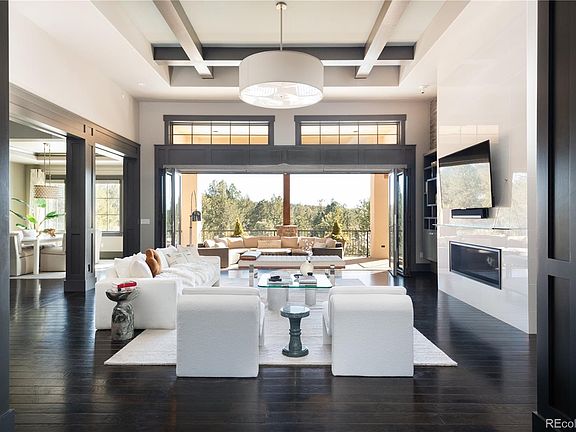 ***Under Contract - Accepting Backup Offers***Contemporary mountain elegance resonates in the stunning, Sterling Custom Home poised on over an acre in the Village at Castle Pines. Upon approach, the stone exterior and brick pavers juxtaposed against professional landscaping make for striking curb appeal, hinting at the splendors inside. The interior showcases exquisite craftsmanship and designer finishes at every turn. The impressive kitchen boasts top-of-the-line Miele appliances and abundant storage while opening to the great room with exceptional indoor-outdoor flow showcasing mountain views. The magnificent owner’s quarters, also on the main level, offer a luxurious sanctuary anchored by a gas fireplace and an impressive en-suite with dual vanities, a soaker tub, a rainforest shower, and double, bespoke closets. The main level is completed with a stately office, powder room, and mudroom off the 4-car garage with a dog wash. Guest will enjoy their own space with a private suite, including a separate kitchen/sitting area. The lower level is equally impressive with a custom bar, climate-controlled 750+ bottle wine room, rec room, game room, dog run, and additional bed and bathrooms. Set in the gated community, the Village at Castle Pines, this home has lovely neighborhood amenities, from pools and sport courts to trails for exploring. A rare gem not to be missed.