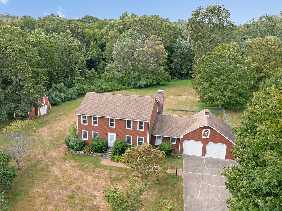 Welcome to this spacious and inviting Colonial set on over 4 beautiful acres, offering the perfect blend of comfort, character, and convenience. This impressive home features four generously sized bedrooms and 2.5 baths, with hardwood floors running throughout. The wide living room, approximately 15' x 24', provides a warm and open gathering space. The kitchen is a true centerpiece, with Corian counters, a gas stove, double ovens, and a striking wood ceiling. It opens seamlessly to the family room, where a cathedral ceiling and wood-stove fireplace create a cozy yet dramatic setting. A first-floor laundry adds everyday ease. Upstairs, the four large bedrooms provide room for everyone, while the primary suite offers a private retreat. Outside, enjoy the best of country living with a huge front and back yard, partially fenced for pets or play, plus a small barn that adds versatility-perfect for storage, hobbies, or animals. The property's sprawling grounds invite gardening, entertaining, or simply relaxing in a private, natural setting. With hardwood floors, quality finishes, and a thoughtful layout, this home is ready for its next chapter. Convenient to town and major routes, yet private enough to feel like your own retreat, this property combines space, charm, and functionality in one remarkable package.