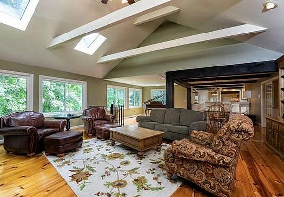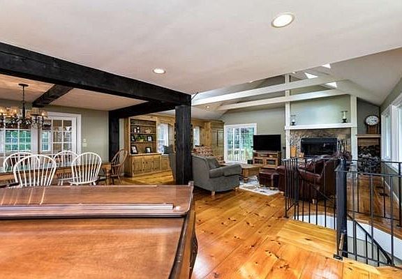 Stunning home with open floor plan on private lot at end of a cul de sac. Absolutely everything you were looking for including a lower walkout level that sets up as inlaw, aupair or teen suite. Gorgeous main living area w/ hardwood flooring, cathedral ceiling, big windows overlooking back yard, built in cabinetry & spectacular stone fireplace. Versatile floor plan w/ lots of possibilities here...dining room w/ built ins, an office w/ french doors on first floor. Granite island in kitchen, beautifully maintained wide pine floors on first floor and in all bedrooms. Screened in porch overlooks very private back yard and Cooper pond. Big master bedroom suite w/ large walk-in closet, sitting area and skylights. BRAND NEW second floor bathroom. Lower level has 5 rooms, a workshop, full bath and walks out the back yard through the sliding door. Two car attached garage, patio, fire pit and parking for all your vehicles. Very affordable heating costs. A special home on a special lot.