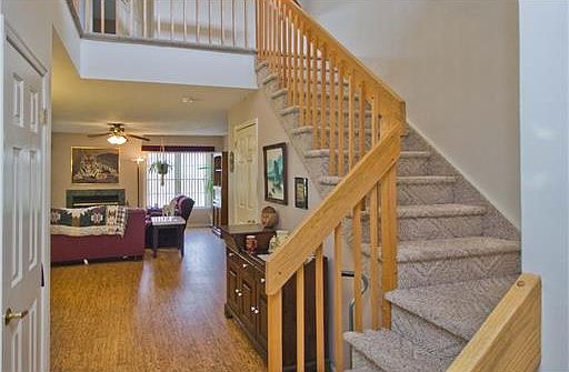 "Resort style living "at home...Relax in the ambience of this " perfect retreat " nestled in desirable North Village at Princeton Walk . Beautiful 2 Bed, 2 1/2 bath townhome offers worry free living. Turnkey move-in ready new / newe upgraded oak kitchen cabinetry w/ new hardware.... 1 yr. new deep kitchen sink w/ gooseneck faucet , granite countertops and tile backsplash ,GE appliances are about 5 years except gas stove 4 yrs ,GE microwave, ceiling fan / light. Two story foyer walls painted two months ago and three yr Berber carpet on steps and both upstairs bedrooms.... Capacious dining / living room area with two-year super resilient, low maintenance and echo friendly cork flooring, chair rail, Wood-burning FP, ceiling light/ fan double pane slider to deck 1 yr., deck with steps to yard . Beautiful