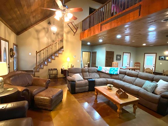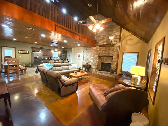 This fully furnished home sits on a quiet 17 acres with 3 bedrooms, 2 baths, 2 living , 1 dining room (seating also at island) and a 2 car garage. It has a beautiful open floor plan with stained concrete floors and has a "cabin-like" feel. Kitchen has granite countertops and new stainless appliances. Cozy up to the warm fireplace with remote start! Wi-Fi and yard care are also included. The house has security cameras. Enjoy the peace and quiet of nature and the convenience of being only 20 minutes away from shopping and dining in town. The tenants are responsible for utilities. Small dogs (weighs up to 20 lbs) allowed in the house. Pet deposit ($1,500.00) is required if dog stays on property. Smoking is not allowed in the house. The house is fully furnished.