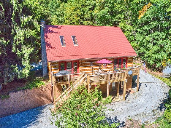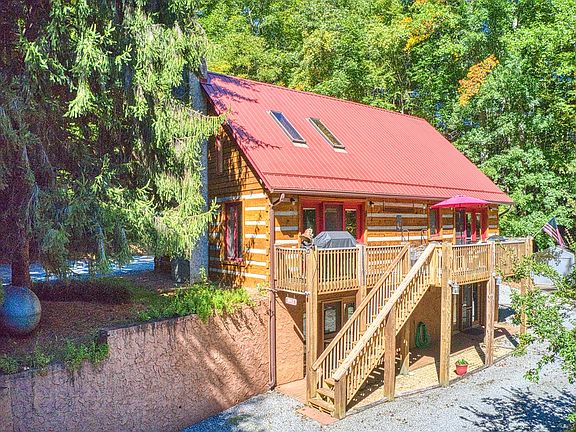 What a special property in the Great Smoky Mountains, a dove-tailed hand hewn log cabin sitting on a beautifully landscaped creekside setting. Cove Creek runs through the entire property and along the front edge. Take a seat on the cabin front deck to listen to the creek water rippling by the front yard. The 15.32 unrestricted acres backs up on 2 sides to the USFS land. Great spaces for quiet solitude in the outdoors. Own your own mountain trails. This peaceful location that is occupied with a 3 bed/2 bath log cabin has so many possibilities! The main floor has an open concept living, dining, kitchen. The master bedroom, one guest bedroom and full bath are also on main floor. The cabin features a loft area with another guest bedroom and bath. Basement is fully finished offering so many bonus spaces. Possible redesign for another sleeping area, den, private office, or additional bath. Front upper deck space and basement patio area. A large outbuilding, storage buildings, shed.