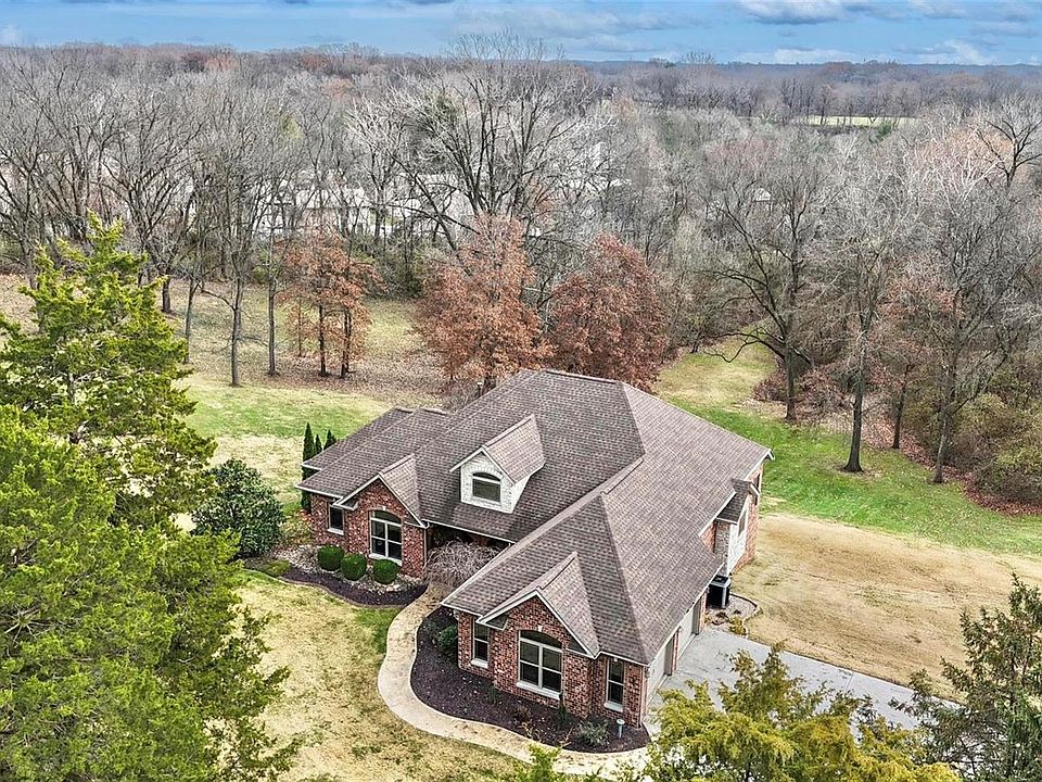 Stunning 7.3 Acre Secluded Property w/ Outbuilding nestled in a peaceful, private setting. This incredible one-story home features a spacious walk-out basement w/stamped concrete floors, partially studded, rough-in plumbing & double door workshop area. The open-concept design includes vaulted ceilings & 9-foot ceilings throughout. The gourmet kitchen is a chef's dream, equipped w/ high-end appliances, walk-in pantry, gas stove, dishwasher, under-counter microwave plus refrigerator. The dining area boasts large windows offering breathtaking views of the surrounding property. The cozy living room is complete w/ a fireplace, perfect for relaxing. The luxurious primary suite features a double walk-in closet w/ direct access to the laundry room. The en-suite bathroom offers separate vanities, large walk-in shower & private commode for ultimate privacy. Main level & lower level covered patios.
