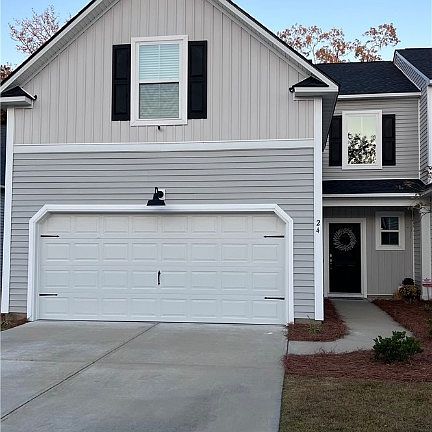Immaculate move-in ready 4 bedrooms with loft, 2.5 bath townhome in the desirable Commons community of Richmond Hill. Enjoy abundant natural lighting with the extra windows on this end-unit on a quiet cul-de-sac. The open floor plan provides a single-family feel with maintenance-free living featuring a main suite on the first floor with double vanities and a spacious walk-in closet. Upstairs are two bedrooms, a full bath, and a roomy loft. The kitchen offers upgraded appliances, including a double oven, granite countertops, LVP flooring, and a breakfast bar open to the living area. Other upgrades throughout the home. Electric fireplace, two-car garage with ceiling racks, double-wide long driveway, and a serene screened back porch overlooking a wooded area. Conveniently located near the exceptional community amenities, including a zero-entry community pool, an open-air pool pavilion, a fitness center, fire pits throughout the neighborhood, and hammock stations.