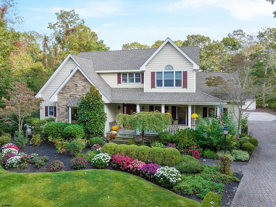 24 CYNWYD DRIVE offers you the opportunity to live in the peace, tranquility and convenience of one of Cape May Court House’s finest neighborhoods. Just 10 minutes to the beaches of Stone Harbor, 5 minutes to great golf courses, restaurants, shopping, family recreation and the popular Cape May County Zoo and bike path! This neighborhood is ideal for year-round or summer use. As you arrive at the property, a beautiful bluestone porch combines with the rich look of mahogany (door, ceiling, railings) to graciously invite you into the home! This meticulous 3,400+ sq foot home was built by high-end, custom home builder Mike Rennie Construction for his own family. As such, the home features extensive, detailed trim work not found in most homes. The common areas on both floors offer site-finished hardwood flooring highlighted by a custom staircase. The property has been impeccably maintained and is currently being utilized as a 3-bedroom home, with each bedroom having its own private bathroom. Every Bath has been updated with DeRita Custom woodworking cabinetry. If needed, the Game Room and/or the Office could be used as bedrooms. The beautiful Three-Season Room overlooks the professionally landscaped and lighted rear yard, and flows out to a welcoming deck (with retractable awning) and then down to the heated saltwater pool & patio area. The generous sized Master Suite is conveniently located on the First Floor and offers volume ceilings, custom applied wood moldings and a luxurious bathroom featuring curly maple custom cabinets enhanced with quartz counter tops and marble flooring, a glass shower enclosure and Jacuzzi. The Kitchen features custom wood cabinetry, granite countertops, paneled appliances and an adjacent pantry. A bar with a beverage fridge separates the Kitchen from the Dining Room. The 2nd Floor features two ensuite bedrooms (both baths recently updated) separated by a Loft with a TV and built-in cabinetry. ADDITIONAL HIGHLIGHTS INCLUDE: TWO oversized garages offering custom built shelving & cabinetry, a 2nd Floor Bonus Room above the detached garage, which is an ideal spot for the kids to call their own, for a Man Cave, or for a Home Office where you can greet business associates without intruding into your personal residence. Pool toys and outside furniture have their own storage spot in the pool/landscape shed off the driveway. In addition, there’s a full house generator, a Security System and cameras inside and out for everyone’s safety. The audio system provides your favorite tunes inside and outside of the home. This property has been proactively maintained by a builder and his contractors. See List of Special Features in MLS.