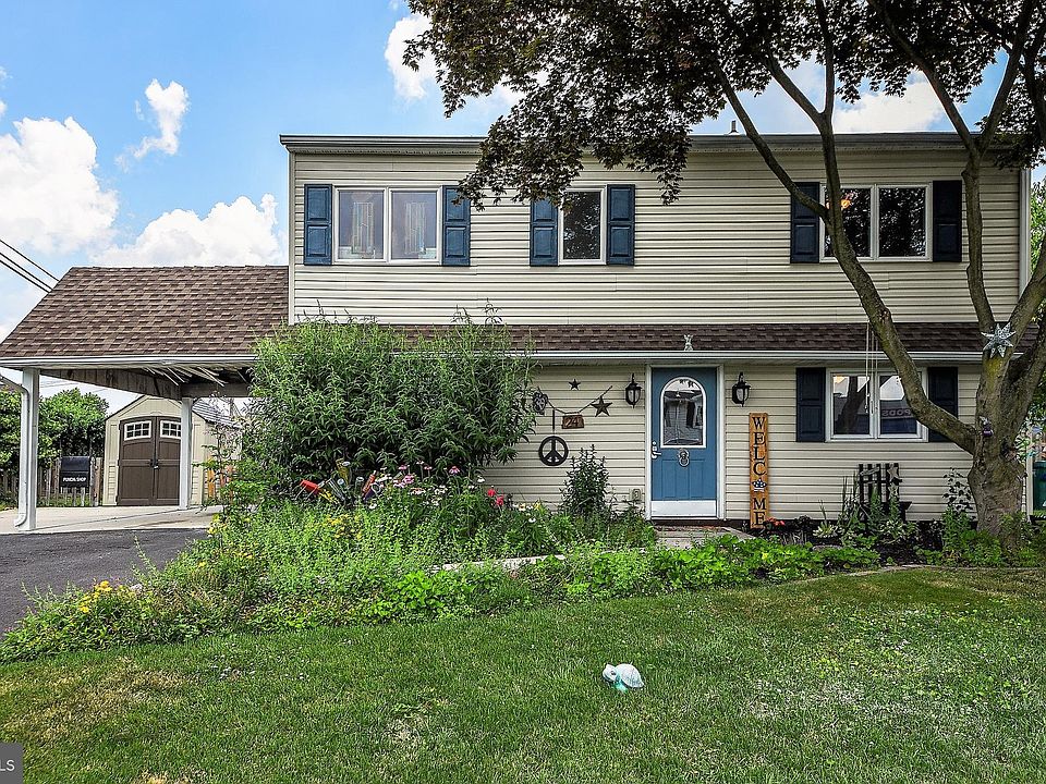 Totally renovated over the last 5 years, this Levittown rancher has a full height 2nd floor & a 480 sqft addition on the back. Colorful flowers surrounding the curved walkway to the front door, vinyl siding, new roof & Anderson windows create a curb appeal you~ll love to come home to. The Foyer, with upgraded gray tile flooring, sliding door to the full Bath, recessed lighting & exposed brick chimney leads into what used to the be Living Room & is now part of a huge Kitchen. The gray tile flows through this open space offering a wall of cabinetry surrounded by an added window, custom ladder light fixture & under-step doggie room! The white shaker-style Kitchen cabinets were carefully chosen to keep the space open & bright. Gray & white granite countertops, glass-front cabinetry, reclaimed wood shelving, smooth-top electric range with freestanding stainless exhaust above, recessed lighting & a massive stainless farmhouse sink make this room your dream! Covered in glass tile, the backsplash extends into the eating area seamlessly blending the 2 spaces together. Through the enlarged opening, you~ll find the 32~ long addition, which is currently separated into 2 areas by a shelving unit. With a soaring ceiling, 2 ceiling fan/light fixtures, recessed lights on a dimmer & real hardwood flooring full of imperfections this enormous space is full of charm. 8 windows, a corner pellet stove sitting on a brick base & sliding glass doors to the rear patio complete this space. The renovated full Bath on this level has a free-form redwood slab underneath glass vessel sinks, wall-mounted waterfall faucets, glass tile that will remind you of the beach & a tub/shower combo covered in white subway tile with glass tile accent block. The front Bedroom has a ceiling fan/light fixture, dual window & a free-form oak slab being used as a desk. The rear Bedroom has a massive closet, single window, ceiling fan/light fixture, recessed lighting & new plush carpeting. Head up the open stairway to find 3 Bedrooms, 1.5 Baths & the Laundry Room. To the right is the Main Bedroom Suite with new water-proof laminate flooring, 2 brand new windows, ceiling fan/light fixture, walk-in closet & Powder Room with white vanity & tile flooring. The front Bedroom has a huge walk-in closet with light, ceiling fan/light fixture, dual windows & new carpeting. The back Bedroom has a wall of closets, ceiling fan/light fixture, new carpeting, dual windows & another wood desk. The full Bath extends into the Laundry Room. Custom vanity with wooden top sits under 2 frosted glass vessel sinks & more wall-mounted faucets surrounded by blueish penny tiling. The walk-in shower has a shower head on each side of it, each with its own temperature control. Lines of penny tile accent the white subway tile shower surround, upgraded gray tile flooring flows right into the Laundry Room with its dual windows & wooden shelving. This home~s lot is irregularly shaped, providing a spacious rear yard which perfectly fits the huge patio, brick firepit, 2 sheds & vegetable garden, allowing left over room for activities. Fully fenced, there is greenery climbing the fence along a side of the yard offering more privacy than you would expect from a Levittown home. The large corner shed is painted to match the home & allows for storage behind it as well. There is a carport for covered parking, plus at least 2 other cars will fit to be off the street. Replaced since summer 2015: roofs, most interior walls to the studs, electric, plumbing, sewer line, removed oil heater, installed heat pump & ductwork for central air & heat, Kitchen, 3 Baths, flooring, lighting/fans, driveway, majority of siding, sealed the oil tank, added hot water heater, installed 2 sheds, removed door to carport, added 2 windows, pellet stove, recessed lighting, electric baseboard heaters in the addition & more. There is nothing to do to this home but move in & enjoy it! Every space has just been painted & is ready for you!