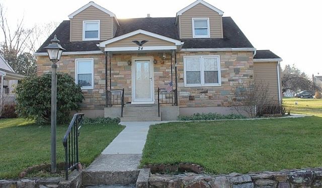 Exceptionally Large Cape MUCH LARGER than it appears. 4 Bedrooms, very large eat in kitchen with full walk in butlers pantry, with loads of additional counter & cabinet space. 2 bedrooms on 1st floor with full bathroom, two more bedrooms on second floor with window seating & built in desks and pluming stemmed in for a 2nd full bath. Large 33x10 Sunroom/Family room w/ 2 entrances leading out to the big back yard. Full, Partially Finished basement with additional knotty pine bonus room, bar room with dry bar that easily could be converted to a wet bar, built in storage cabinets, and large laundry room/workshop. Great Home, Great Yard, Great Price.