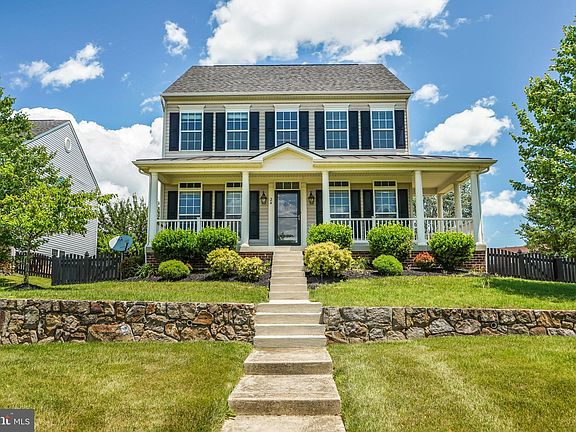 Sitting proudly at the top of a beautifully landscaped front lawn with a stone wall, beautiful leadwalk and a wraparound front porch, this detached 2-car garage home has all the charm of a small-town dream. With views of the foothills and elevated just above the roof peaks of the other homes, this charmer epitomizes stately elegance. Fully fenced and at the end of a cul-de-sac, this gorgeous home is 12 years young and feels like a new build. Freshly painted in Aesthetic White from top to bottom with brand new, neutral carpeting. Newly refinished Hardwood floors in rustic beige, new designer light fixtures and fans, all new door hardware, cabinet pulls, switch plate & outlet covers, updated smoke detectors and recessed lights. The Michener II floorplan with finished 4th level loft offers versatile family and living space for everyone. The center island gourmet kitchen with double wall ovens has beautiful, rich cabinetry, brand new granite countertops, new dishwasher & gas stove top. Butler's pantry/dry bar pass through to an elegantly appointed formal dining room and living room, flanking the center hall. This unique floorplan feels open without losing its sense of defined space. Grand 2-story entryway and balcony overlook from 2nd floor lets lots of natural light in every corner. Gorgeous front porch for enjoying coffee or cocktails and watching the clouds go by has been freshly power washed and painted. With 4 generously sized bedrooms, the bonus loft on the fourth level offers multipurpose space for a playroom or teen hangout, a home office or craft-room, extra storage space or anything you can dream of! Primary suite with new ceiling fan and double walk-in closets is bright and spacious. Primary bathroom with vaulted ceiling has new faucets, mirrors, light fixtures, towel bars and accessories. Secondary hall bath also with new faucet, mirror, light fixture and accessories. Full, walkout basement with new carpet and paint is ready for you to make it your own. Huge L-shaped recreation room with recessed lights throughout and additional storage space and closets offer a place for everything. Bathroom rough-in and extra wide staircase exit make this lower level an excellent space for in-laws, au-pair suite or separate living space. Lovettsville prides itself on its small-town, close-knit community with annual Mayfest, Octoberfest, summer concert & movie series at the Town Center Pavilion and the Lovettsville Community Center. The community center and park has activities for all ages, including swimming, tennis, basketball and childcare and the town's 90-acre community park includes an equestrian facility, off-leash dog area, amphitheater, fishing pond, community garden, nature study area, soccer and baseball fields. Weekends in the nearby mountains, hiking or trail riding, Potomac River water activities, wineries & breweries and Sunday drives to explore surrounding towns & antique shops! With a neighborhood tot lot and playground, covered picnic pavilion, award winning restaurants, high speed internet, and the Town Green just a block up the sidewalk, everything you could need or want is at your fingertips. Easy Commute to Northern Virginia, Washington DC, Frederick MD, and Charles Town WV with access to the MARC TRAIN to DC Just 3.4 miles by car. Don’t miss this gorgeous front porch home just a stone’s throw from the heart of Lovettsville!