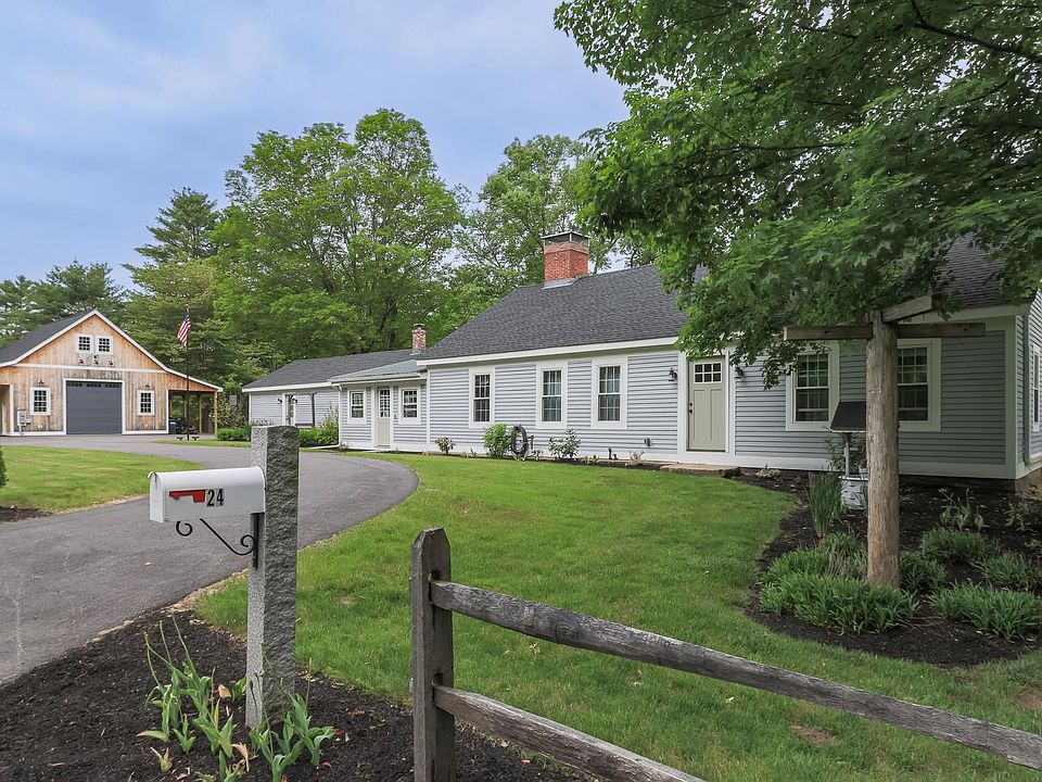 Welcome to this fully renovated farmhouse where classic charm meets modern elegance. Formerly the historic Tilton Tavern, this special home is nestled in a nature lover’s paradise surrounded by Bear Brook State Park. Inside, the designer kitchen is the heart of the home, featuring quartz countertops, custom cabinetry, farmer’s sink, large island, & bronze hood accent. The home’s heritage shines through w/ wide plank wood floors, 3 brick fireplaces, & exposed wood beams. The layout includes a cozy sitting room with bar, mudroom, spacious dining and family rooms, plus a flexible office and playroom - both that could easily be used as bedrooms. Two beautifully updated bathrooms complete the main level. Upstairs, private guest quarters offer a peaceful retreat with 3/4 bath and attic storage. Comfort is ensured with new mini-split A/C, updated electrical and plumbing, new siding, windows, roof, driveway, and a standby generator. NEW 32 X 36 barn with two 12' lean-tos and nearly finished bonus room w/ heat & AC offering an add'l 575 (+/-) sq/ft - ideal for gym or home office. Outside, enjoy a firepit, patio, shed, irrigation system, & lush landscaping - perfect for entertaining or relaxing. All centrally located near Concord, Manchester, and I-93, w/ unmatched access to hiking, biking, snowmobiling, & more across 11,000+ acres of Bear Brook State Park. More than a home, this is a lifestyle! Please see extensive improvements list. Showings start at first open house Sat 9/6 11 -1 AM