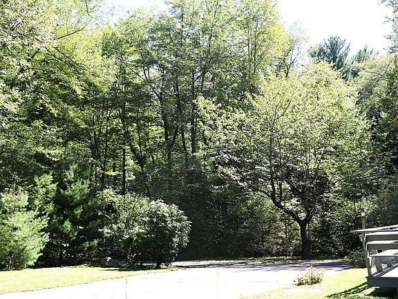 The Perfect Hideaway! Surrounded by 3.84 wooded acres, this custom built 7Rm, 4Bdrm, 2 Bath Contemporary has the utmost in privacy! Located on a dead end street this awesome home is hidden from sight. Wide open floor plan with, cathedral ceilings, interior balcony, oversized floor to ceiling stone fireplace & 4 sets of sliders lending outdoor views to main living areas. Open Kitchen, plenty of cabinet space, complete with breakfast bar & appliances. Second floor balcony w/transom windows, full bath w/skylight and 2 spacious bedrooms. Additional full bath and 2 bedrooms on first floor. Central air, FWA Gas propane heat, Insulated windows and sliders to enclosed porch. Wonderful wrap around deck, level yard , plenty of parking and 2 car attached garage. Great location close to center of town and shopping!