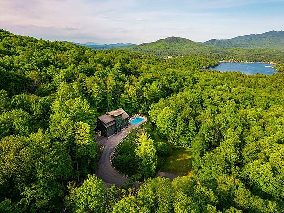 Custom Adk Craftsman 4700SF 5BR 4.5BA Home curated by renowned local builder sits atop 5.5 private acres w sweeping 180 Southerly views of Ampersand, Scarface & Kiwassa Lake. Beautiful rich woodwork throughout, w many new upgrades including 3rd-floor Bedrooms w custom closets, & BAs w all new flooring, choice vanities w quartz countertops, recessed lighting & more. Window AC units throughout w matched window fittings. Culligan water filtration system. Basement renovated w LVP flooring, home gym which could be 5th BR, office & guest BR. Primary Bedroom on Main Level. The en suite sophisticated bathroom is accented by a soaking tub at the window's edge. Open kitchen, living & dining w pool table & woodburning fireplace. Views & abundance of natural light from every angle. 2 Stall Attached Garage. Recent driveway expansion work in addition to a new barrier & parking a area. Heated Saltwater Pool & new pump. Expansive wood deck. Bike downtown for shopping & dining! Boat the Saranacs!