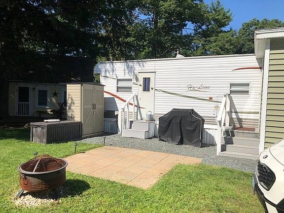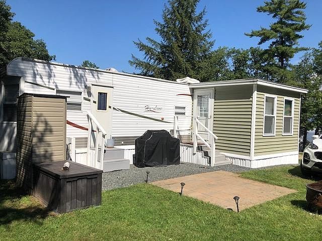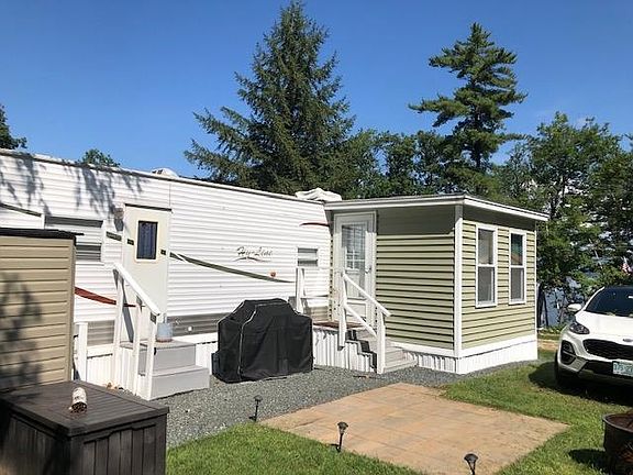 GILFORD: Welcome to Twin Pines! This well-maintained mobile home is being sold fully furnished and comfortably sleeps six people. There are Stainless Steel appliances with an open concept kitchen/living (17' x 10') with an additional bonus room offering more living space. Living room features an electric fireplace. Outside, a lovely patio for entertaining/relaxing. Easy access to beautiful Gilford Beach with 1700' of sandy beach, playgrounds, snack bar and picnic areas. Close to the public town docks with boat launch on Lake Winnipesaukee, Bank of NH Pavillion is just a short drive away for outdoor concert entertainment. Walking distance to area restaurants (including the fabulous new waterfront dining, The Breeze Restaurant). If you are looking for a summer getaway, Twin Pines is a wonderful option!