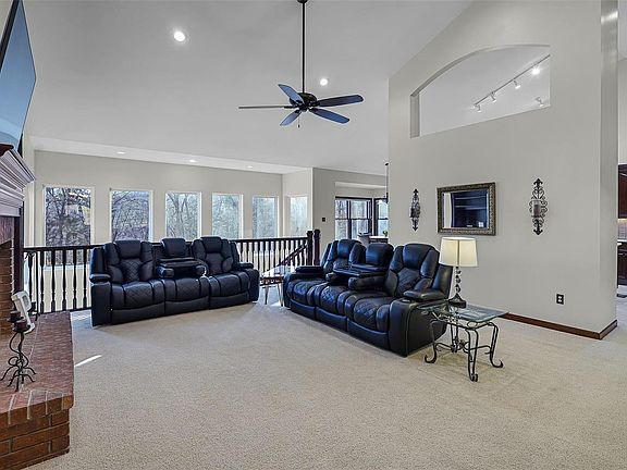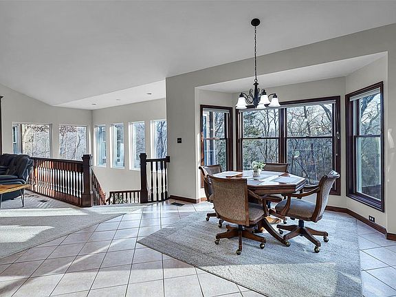 Luxurious 4bd/4.5b Atrium Ranch w/3-car, finished garage on 3+ wooded acres with scenic views. Vaulted Great Room w/fireplace & built-ins. Formal dining room w/coffered ceiling. Cherry 6-panel doors & trim. Center island Kitchen w/custom cherry wood cabinets & Corian countertops, pantry, built-in, convection microwave & oven. Also, a beautiful 3-season room. Large Master suite w/large bay window, 2 walk-in California closets, double vanities, jetted tub & separate shower. Fabulous, walk-out, finished lower-level w/9 ft. ceilings with huge rec room w/wet bar, an office, 2 bedrooms & 2 full baths. Updated lighting, door handles/hardware, kitchen cabinet hardware; plus, newer septic system, water softener, water heater, & roof. Interior freshly painted 2 years ago, freshly sealed driveway, newer deck, Anderson windows, sprinkler system, ADT security system & Geothermal Heat, AC, & Hot Water - average utility bill of $222/month. Lakes in Subdivision for fishing/swimming, private pool. Additional Rooms: Sun Room
