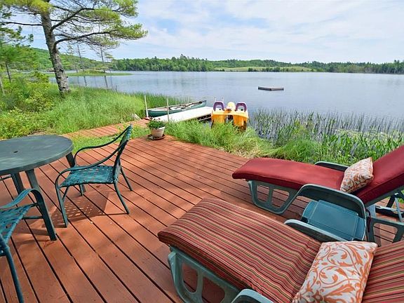 5.4 acres of seclusion & privacy on Second Pond. Offering 494' of year-round, freshwater fun & beauty. Lovely home & comfortable living, with an open floor plan & pond views from all major rooms. 3 bedrooms & 2 full baths in main home PLUS a complete guest apartment w/private entrance in the lower level. Detached 2 car garage. Pond side dock, deck & float. 1st floor bedroom & bath = option for one floor living. Full bath on all 3 floors. Only a mile to the center of vibrant Blue Hill Village. Very low taxes.