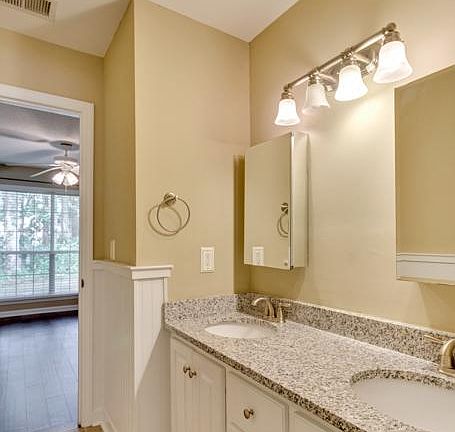 Beautiful corner lot nestled back to the trees in the desirable Buckhead Subdivision. The home features a great open floorplan with high ceilings, elegant columns, upgraded moldings and hardwood floors. The spacious modern kitchen boasts stainless steel appliances and solid surface countertops with an undermount sinks. The large master suite has a tray ceiling, huge walk-in closet, separate garden tub and shower, and duel sinks. Two bedrooms on the opposite end with a Jack-and-Jill bathroom and a great bonus room/fourth bedroom on the second floor Enjoy the serene wooded back yard with extra-large patio. This home is in an amenity packed community that features lagoons, swimming pool, playground, tennis courts and basketball courts.