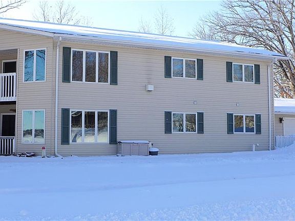 LOCATION LOCATION LOCATION!! Spectacular view of Rice Lake and the adjacent Veterans Memorial City Park. Within easy walking distance of library, post office, & all downtown shopping. Featuring two bedrooms and two full bathrooms, this property is move-in ready. This 2nd floor corner unit has a covered deck facing the lake and park & 1-car detached garage. It is the last available unit in the building. If you're looking for a very nice property and easy living with no need to do any exterior yard work or shoveling, this is the place for you!