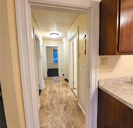This second floor apartment has three bedrooms and one bathroom. NO PETS One year minimum.