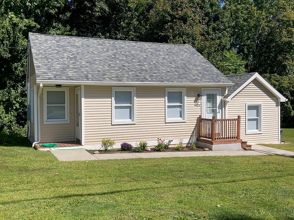 The Cozy Cottage! Brand new completely renovated inside and out New high efficient heat pump split system that supplies both heating and cooling New plumbing New electric Super efficient insulation in flooring, walls and ceiling Thermal windows The main level consists of: Open concept great room with full kitchen, including electric glass cooktop range, above range microwave, dishwasher, French door refrigerator, plenty of cabinets with under lighting and a beautiful ceramic tile backsplash. The entire living space has luxury vinal barnboard flooring and a dramatic beamed vaulted ceiling with up lighting and ceiling fans The bathroom has ceramic tile flooring, with a huge walk in shower. Washer and dryer alcove for a stackable unit. Three steps down from the main living area is the bedroom, with a large double closet, over looking the beautiful side lawn The location if central to everything, steps to the bus line, shopping, laundry/dry-cleaner and many restaurants One year lease One month security and first month rent due at lease signing prior to move in Tenant pays all utilities: Electric Water Tenant responsible for snow removal driveway and house sidewalk, not street sidewalk Landlord pays for all lawn maintenance No smoking in house
