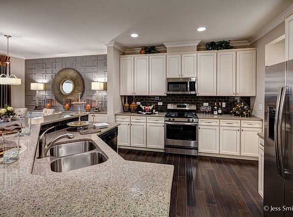 This Summit plan is the largest home in this community, featuring 3 beds, 2.5 baths, 2 car garage & basement~The open floor plan is beautiful & perfect for daily living and for entertaining~Hardwood flooring throughout entire first floor~42" Aristokraft kitchen cabinetry, granite tops, undermount stainless sink, GE stainless range, microwave & dishwasher and breakfast buffet option~Brushed nickel lighting & hardware throughout~Rectangular bathroom sinks & loads of other high end finishes in a super convenient location!