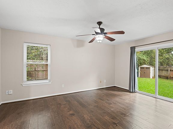 Welcome to your dream home! This stunning two story, 3 bed 2.5 bath residence is the epitome of luxury and comfort. As soon as you step inside, you'll be greeted by high ceilings and exquisite engineered hardwood floors that span the lower level. The neutral color palette creates a warm and inviting atmosphere, making it easy for you to envision yourself living here. But that's not all this home has been updated with modern touches such as an updated stair rail, light fixtures, and Granite counter tops in the kitchen. You'll love cooking in this space with its sleek design and ample storage. As you make your way upstairs, prepare to be wowed by two more spacious bedrooms along with a fully updated bathroom. Need even more space? The loft game room/bonus space is perfect for entertaining or creating a cozy reading nook. But the real highlight of this home is the backyard oasis waiting for you outside. Imagine hosting summer BBQs on the deck or simply relaxing in the large yard with no rear neighbors for added privacy. Plus, there's plenty of room to play or store your belongings in the convenient storage shed. Located in Panther Creek in The Woodlands, this home offers both style and convenience at its finest. Don't miss out on this opportunity to make this beautiful house your forever home schedule a showing today!