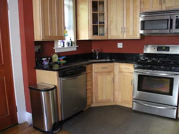 New windows, insulated (low heating bills), fresh paint job, refinished hardwood floors, including a washer and dryer in the basement. 9 rooms in total, kitchen, sitting room, dining room, two bathrooms ( full and half) and three full-size bedrooms all with full-size closets, a full finished basement room for office, etc. 2 off-street parking spaces.