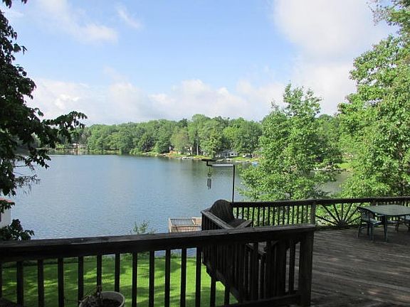 2 Story Contemporary Lakefront Home with Lake Rights and Beautiful Lake views right from your spacious two level deck. Home features: Fully finished basement with rec room, workshop, wet bar, family room; Living Room with Cathedral Ceilings and Free standing Wood burning stove; Open Floor Plan; 4 large bedrooms and 4 full baths. Outside features: Dock, Boathouse, Two level deck, Balcony, Patio, Screened Porch, Landscaping.
