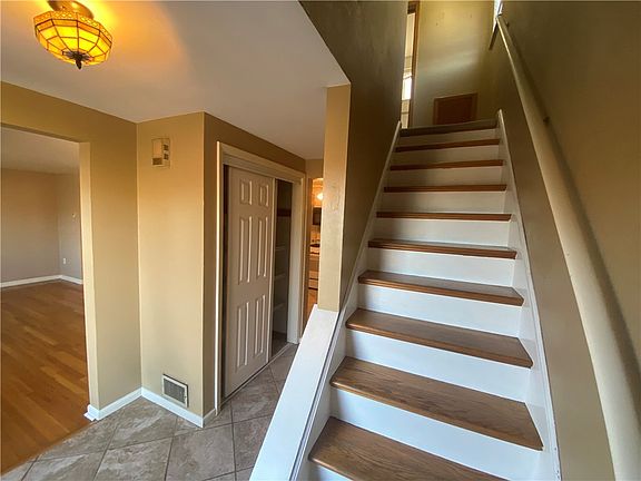Located at the the end of a dead end street, this home has a driveway with an ATTACHED GARAGE. On the front of the house there is a small landing that could fit a small table and chair set, and in the rear, there is a yard with a covered concrete patio great for entertaining. Once inside, you will notice the HARD WOOD floors in the living room, dining room, and all 3 bedrooms. The hallways, and finished basement have new wall to wall carpet. The Kitchen and entryway floors are 12x12 ceramic tile. The kitchen is large enough to add additional counter space, as well as flexibility on the location of the refrigerator. The NEW WATER HEATER and CENTRAL AIR system were installed in 2021. In the dry basement there is an additional storage room, and large laundry room with a shower and and toilet.