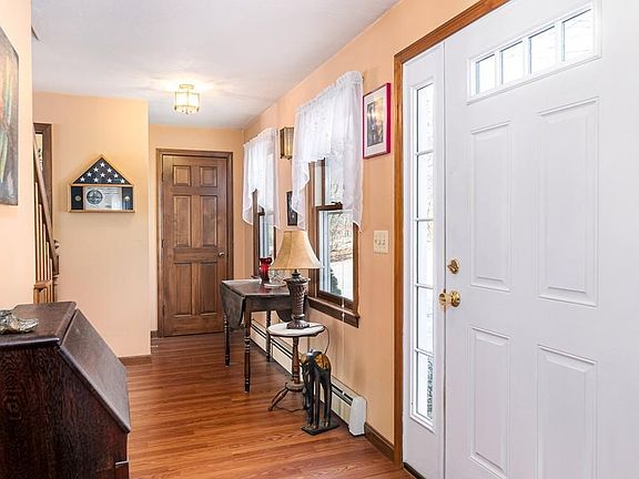 This Colonial is set perfectly on the lot with a nice front yard and a private backyard. This home features a double sided fireplace, a spacious, front to back living room, and large eat in kitchen with island. The deck has a covered area for shade, a lower level with hot tub and plenty of room to grill, relax or watch the activity in the wooded backyard. Leave all the shoes in the entry/mud room right off the garage. Upstairs are 3 good size bedrooms including a Master bedroom with attached master bath and 2 walk in closets. Additional full bath completes the 2nd floor. The basement has a finished family room/play room and lots of storage space. Located on a cul de sac neighborhood great for riding bikes or walking dogs. This is a perfect house for entertaining family and friends. Make your appointment today!